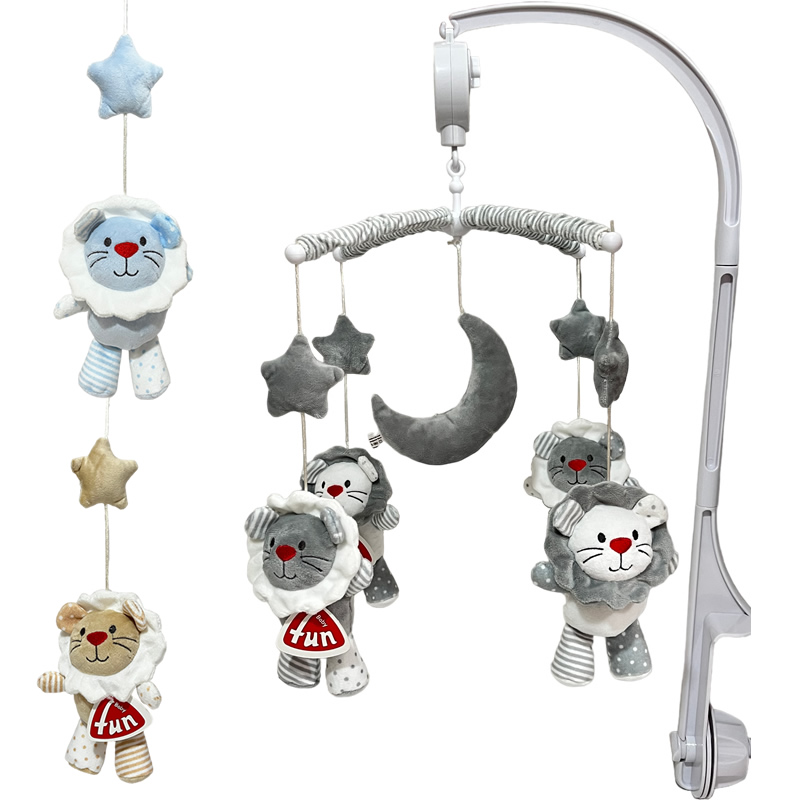 کافی است کوک آن را بچرخانید تا زمانی حدود یک دقیق موسیقی آرامش بخش آن پخش شود. روی آویز چهار عروسک شیر همراه با ستاره و یک ماه در مرکز آن ها قرار گرفته است. عروسک ها با بالاترین کیفیت ممکن تولید شده اند و به صورت جداگانه هم قابلیت بازی برای کودک دارند. این آویز، علاوه بر جنبه سرگرمی و تقویت مهارت های کودک، خواب راحتی را برای او به ارمغان می آورد. با توجه به ساختار پایه آویز، مناسب برای تخت هایی است که دیواره نرده ای دارند. سرهم کردن آن برای استفاده بسیار ساده است. همراه با جعبه ای بسیار شکیل و مناسب برای هدیه دادن ارائه می گردد.