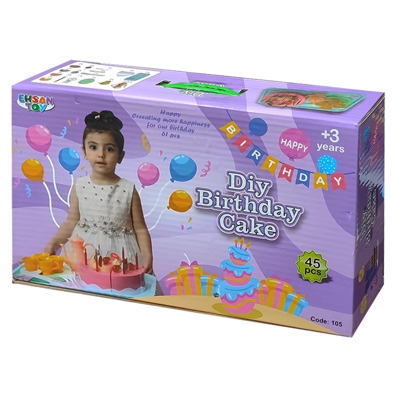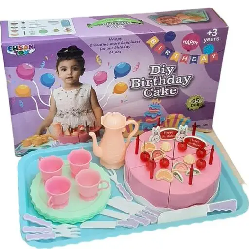 ست کیک تولد اسباب بازی شامل قطعات : کیک . چاقو . سایل تزئین کیک . چاقو بزرگ . چنگال . سینی . بشقاب . فنجان . قوری است . برای شادی و سرگرمی کودکان طراحی شده است. این قطعات از جنس پلاستیک بسیار با کیفیت هستند و برای بازی کودکان بسیار مناسب هستند. در این مجموعه یک کیک وجود دارد که به قطعات مختلف تقسیم میشود و بروی خود سوراخهای قرار داده شده تا وسایل جانبی مانند میوه و وسایل تزئین کیک که دارا پایه کوچک به اندازه سوراخها هستند بروی آن قرار بگیرند. یکی از تکههای کیک که شمعی پلاستیک بروی آن قرار داده شده است نکته قابل توجه این اسباب بازی است. ابعاد کیک ۱۵ سانتیمتر است که برای بازی کودکان سه سال به بالا بسیار خوب است. خطر بلعیدن قطعات کوچک استفاده برای کودکان زیر 3 سال ممنون است .مشخصات و ویژگی ها