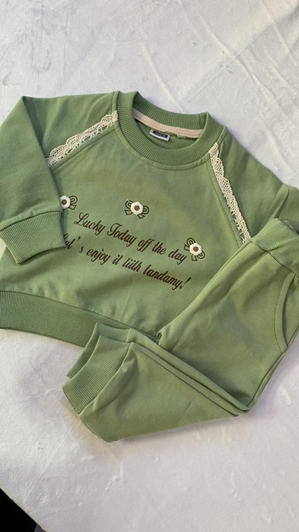 مناسب مهمانی و منزلبلوز و شلوار آستین رگلان نی نی ناز کد 674 در دو رنگ سبز و کرم عرضه میشود .