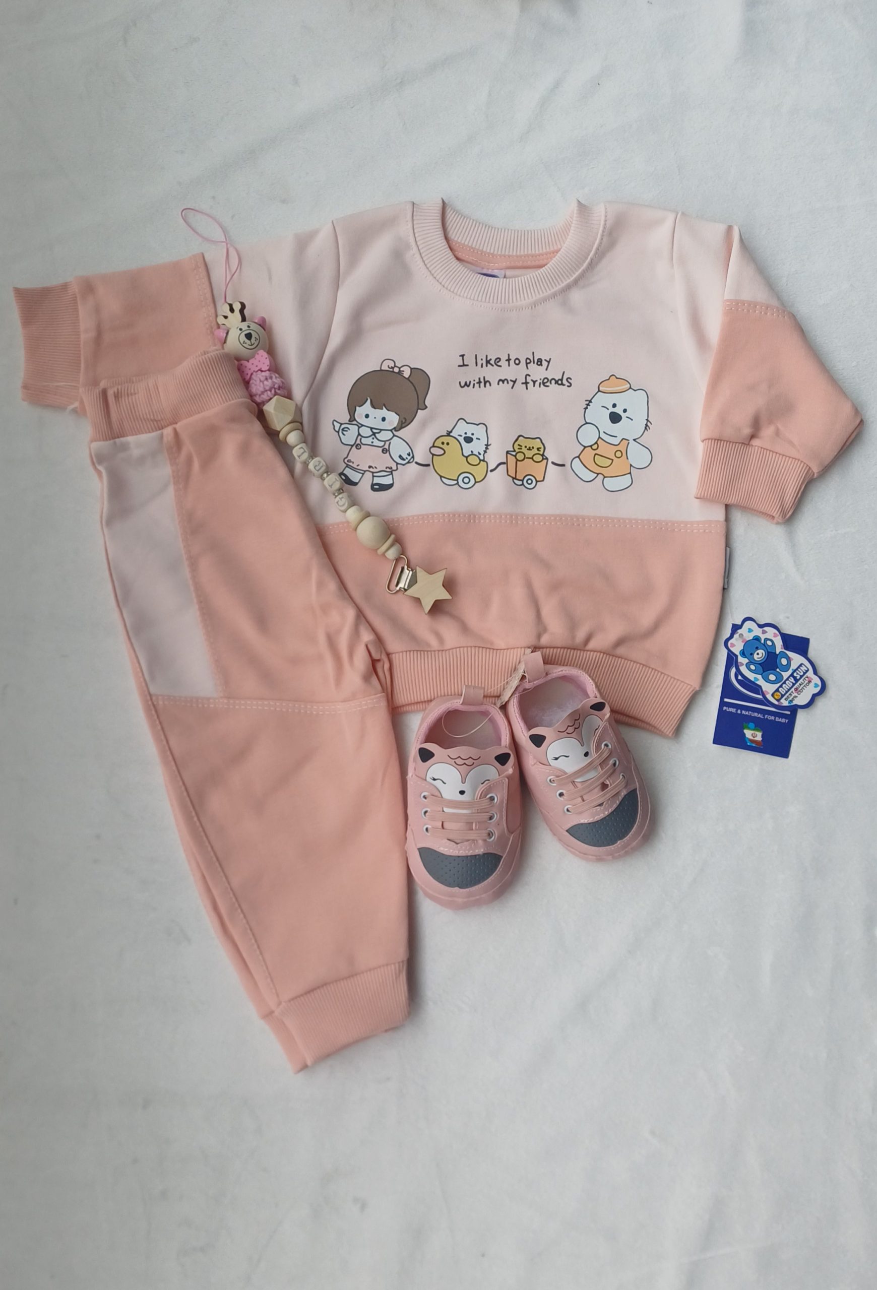 ویژگی ها بلوز و شلوار بی بی سان کد 2093 طرح دختر و حیوانات :
