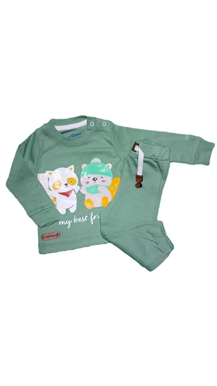 بلوز و شلوار چیاکو طرح راکون و سنجاب جنس پنبه دورو ضد حساسیت . بچگانه . راحت . مناسب خانه و مهمانی این ست ، بلوز آستین بلند و  شلوار کمر کش دارد  و قسمت پایین مچ  شلوار کش به کار رفته . برای راحت پوشیدن بلوز کنار یقه دکمه بکار رفته . کمر شلوار کش به کار رفته . فرم لباس معمولی