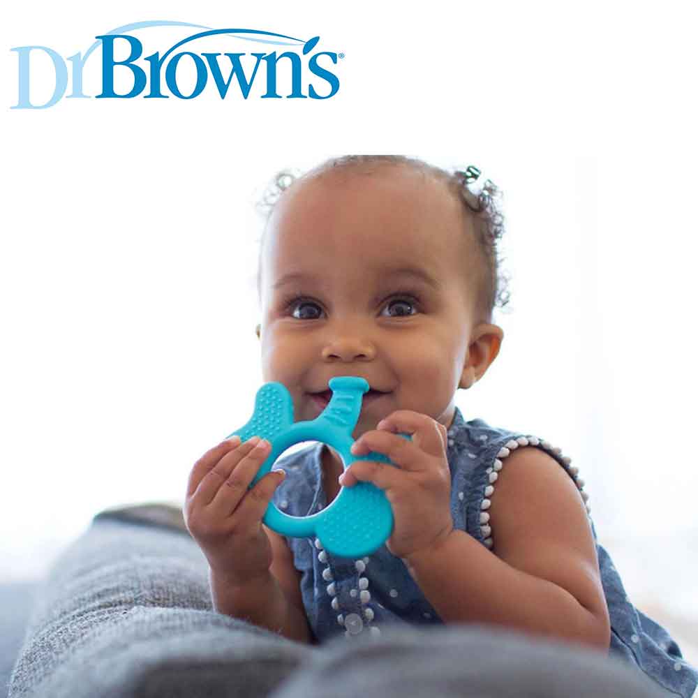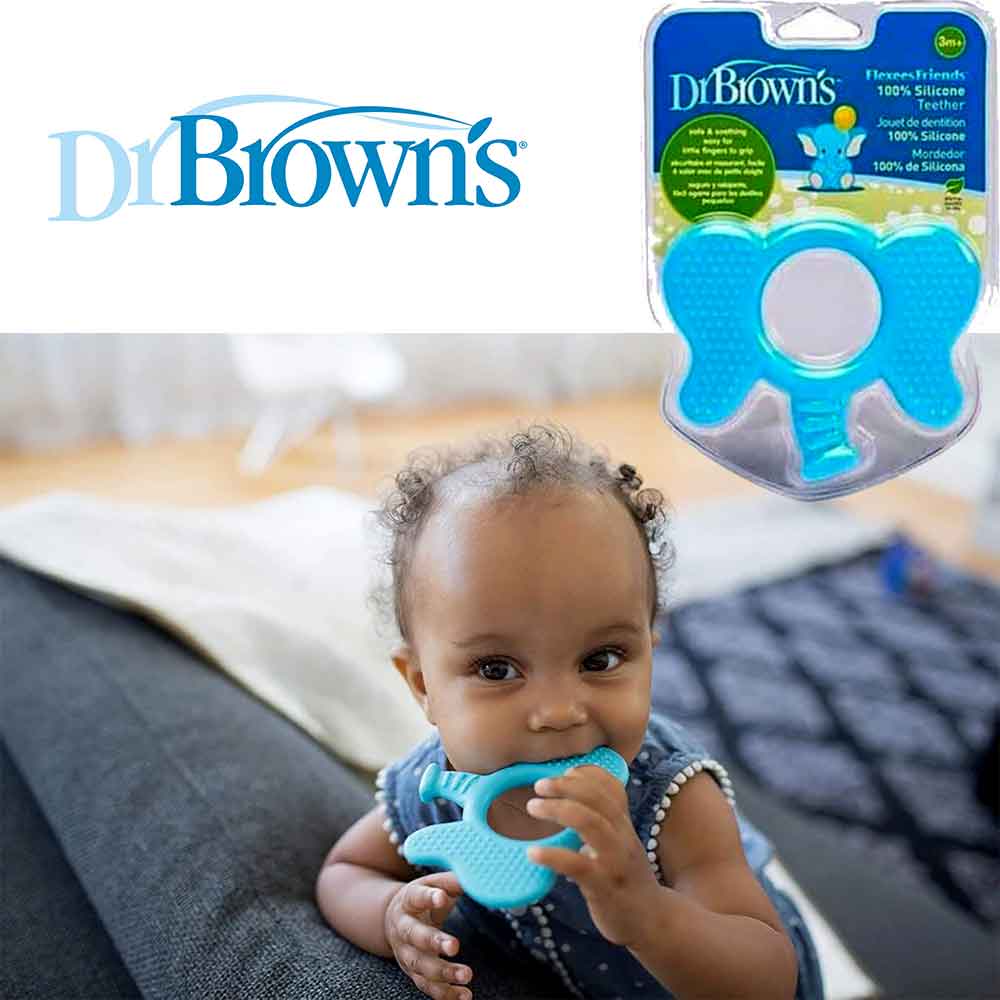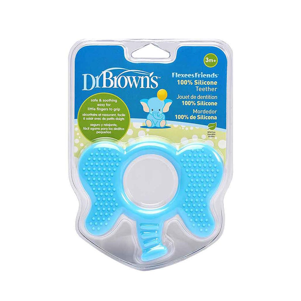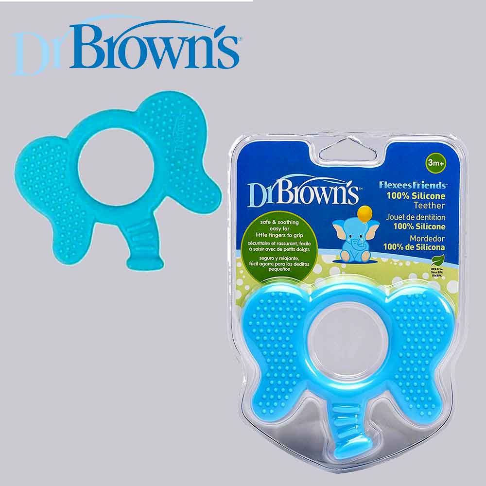 یکی از وسایل بسیار پر کاربرد در دوران ابتدایی عمر نوزادان دندانی می باشد. به دلیل اینکه اولین دندان های انسان در این زمان شروع به رویش میکند همراه با درد و خارش می باشد. لذا استفاده از دندانی طرح فیل دکتر براون می تواند گزینه ای مناسب جهت آرام کردن نوزادان باشد. در نوزادان استفاده از دندانگیر بسیار کاربردی و پر استفاده می باشد. به همین دلیل لازم است جهت تهیه یک دندانی مناسب دقت و توجه خاصی داشت تا در مدت زمانی که نوزاد از این دندانی استفاده می کند هیچگونه مشکل و ناراحتی برای او بوجود نیاید. در این زمینه برند های معتبری اقدام به تولید انواع دندانی کرده اند که هر کدام دارای ویژگی های خاصی می باشد. دندانی طرح فیل (Teether Dr browns) یکی از مدل هایی است که نوزاد میتواند از آن به راحتی استفاده کند و بدون هیچ مشکلی برای تسکین درد و خارش آن را مورد استفاده قرار دهد.   یکی از آزار دهنده ترین تجربه های نوزاد دندان درآوردن می باشد که باعث بی قراری و گریه می شود قطعا این بی قراری برای والدین نیز آزاردهنده و ناراحت کننده می باشد ،برای تسکین این درد و خارش در لثه نوزاد می توان از دندانگیر استفاده کرد. نوزاد با به دهان گرفتن دندان گیر و سائیدن لثه به آن خارش و درد لثه خود را کاهش می دهد. با شروع رویش اولین دندان های کودک در حد فاصل 4 ماهگی تا یک سالگی کودکان اغلب دچار خارش لثه، درد، اسهال، بی اشتهایی، تب و کلافگی زیاد می گردند. استفاده از دندانگیر 002 دکتر براون طرح فیل مناسب می تواند باعث تسکین کودک شود، در میان تنوع های بسیار بازار ما به شما دندان گیر طرح فیل دکتر براون را توصیه می کنیم. دندانگیر 002 دکتر براون طرح فیلبا داشتن فرم شبیه به فک کودک، کاملا در دهان او جا شده و پوشش کامل را جهت آرامش کودک فراهم می سازد این محصول هم چون تمامی محصولات باکیفیت برند دکتر براون تهیه شده از مرغوب ترین مواد اولیه و فاقد ترکیبات شیمایی مضر می باشد. دندانگیر 002 دکتر براون طرح فیل با ابعاد 1*9*10 سانتی‌ متر و وزنی معادل 43 گرم به راحتی در دستان ظریف کودک جای می گیرد . و دارای طرح جذاب بسیار برای کودک جالب توجه است و او را به استفاده ترلغیب می نماید. دندان گیر روباه دکتر براون را نیز جهت التیام بیشتر الهتابات لثه کودک فراهم آورد، نکته قابل ذکر این است که دندان گیر مدل فیل دکتر براون از پلاستیک مرغوب ساخته شده  و فاقد هر گونه مواد مضر شمیایی بوده ، توجه داشته باشید که دندان گیر را تحت هیچ شرایطی درون فریزر نگذارید چرا که سفت شدن بیش از حد دندان گیر می تواند به لثه های کودک آسیب جدی وارد کند.   تمامی محصولات مربوط به کودک بخصوص اقلامی که با بزاق کودک درگیر خواهند بود، همیشه باید تمیز وعاری از آلودگی باشند، پس از خرید و بعد از هر بار استفاده، دندان گیر مدل فیل دکتر براون DR BROWNS را به خوبی با آب ولرم شسته و کاملا خشک گردانید. مناسب استفاده از + 3 ماه دارای سطح برجسته برای کمک به تسکین خارش لثه به راحتی در دستان کوچک کودک قرار می‌گیرد جنس سیلیکونی نرم و مقاوم طراحی ارگونومیک فاقد BPA