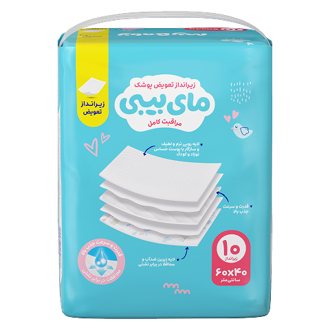 راحتی در تعویض پوشک بدون نگرانی از کثیف شدن سطوح حفظ بهداشت و ایجاد محیطی تمیز برای نوزاد صرفه‌جویی در زمان با طراحی سبک و قابل حمل مناسب برای سفر و استفاده در خارج از منزل حفظ سلامت پوست نوزاد با مواد باکیفیت و ضد حساسیت   ویژگی زیر انداز تعویض پوشک مای بیبی My Baby : قدرت جذب بالا جهت کاهش نشت و خیس شدن سطوح زیرین سطح نرم و لطیف برای راحتی بیشتر نوزاد ضد حساسیت و مناسب برای پوست‌ های حساس بسته‌ بندی اقتصادی شامل ۱۰ عدد زیر انداز مناسب برای استفاده در منزل، سفر و مراکز درمانی این زیرانداز پنج لایه است که موجب قدرت و سرعت جذب بسیار بالا می شود. محافظت در برابر نشتی به تمامی سطوح دارد و می توانید با خیال راحت آن را روی فرش یا هر سطح دیگری پهن کنید. لایه رویی زیرانداز، نرم و لطیف و سازگار با پوست حساس نوزاد و کودک است. مناسب برای وقت تعویض پوشک یا باز گذاشتن نوزاد است. با کمک این زیرانداز هنگام سفر یا بیرون از خانه، محیط بهداشتی ایمنی را برای فرزندتان مهیا کنید. این محصول یکبار مصرف است و پس از هربار استفاده و آلودگی باید آن را دور بیندازید. ابعاد زیرانداز تعویض  پوشک مای بیبی ۴۰*۶۰ سانتی‌متر است.