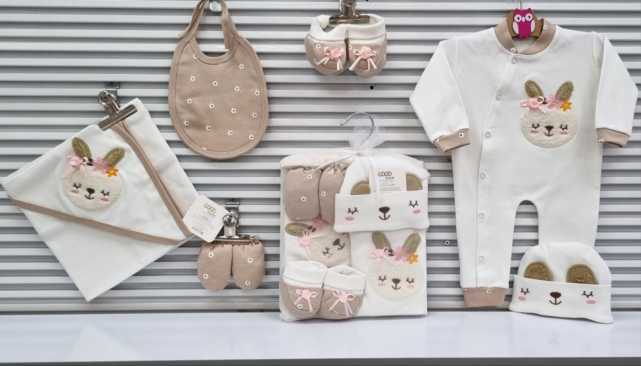 ست بیمارستانی گود مارک طرح خرگوش مجموعهای از لباسها و لوازم ضروری برای روزهای اول تولد است که شامل لباس، کلاه، دستکش، جوراب و پتو میشود.