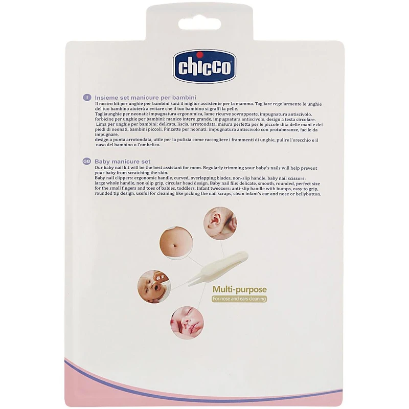 ست قیچی، ناخنگیر و سوهان چیکو محصولی با کیفیت برای برطرف کردن این نیاز شما محسوب می شود. یک عدد قیچی با لبه ی گرد کاملا ایمن و دارای درب پوش دارد. یک عدد ناخنگیر مخصوص نوزادان با دسته ی راحت برای به دست گرفتن مادر دارد. یک عدد سوهان در این مجموعه قرار دارد که به شما برای رفع تیزی ها پس از ناخن گرفتن نوزاد کمک می کند. این سوهان دارای دسته است و کارآیی آن بسیار راحت تر از سایر سوهان های دیگر است. قابل استفاده از بدو تولد نوزاد است. این محصول تهیه شده از استیل ضد زنگ است.مشخصات و ویژگی ها