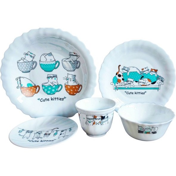 سرویس غذا خوری ۵ پارچه کودک پارس اوپال طرح سه گربه