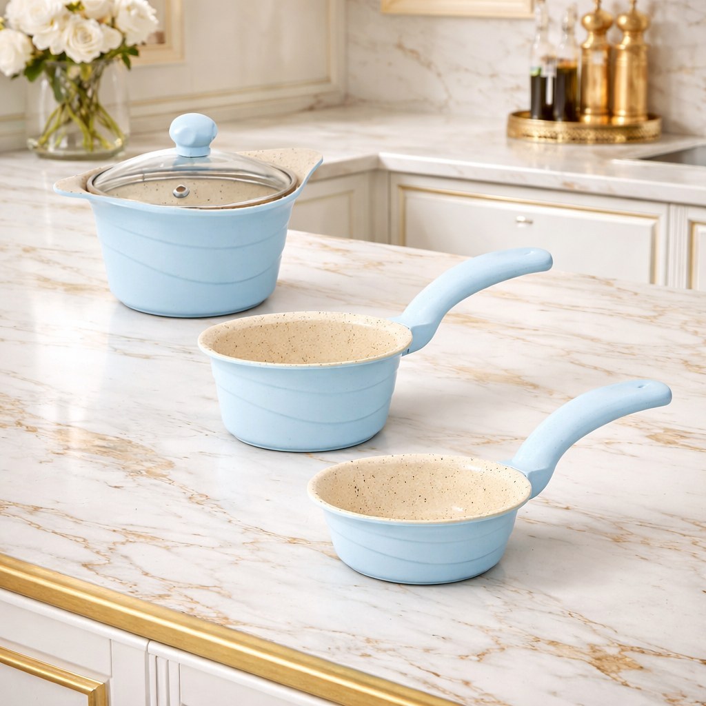 سرویس قابلمه 4 تکه عروس مدل دیاکو از آلومینیوم سبک و مقاوم ساخته شدهاند. ضخامت استاندارد بدنه قابلمهها باعث توزیع یکنواخت حرارت میشود که از سوختن و چسبیدن غذا جلوگیری میکند. پوشش داخلی تفلون نچسب و فاقد مواد مضر، سلامت غذایی را تضمین میکند و شستشوی آسان قابلمهها را امکانپذیر میسازد. دربهای شیشهای با حاشیه استیل ضدزنگ مقاومت بالایی در برابر ضربه و حرارت دارند. دستههای از جنس باکالیت نسوز، عایق حرارتی هستند و مانع انتقال گرما به دست میشوند. این سرویس برای استفاده روی اجاقهای گاز، برقی و سرامیکی کاملاً مناسب است و دوام طولانی مدت دارد.برند سرویس قابلمه 4 تکه عروس مدل دیاکو