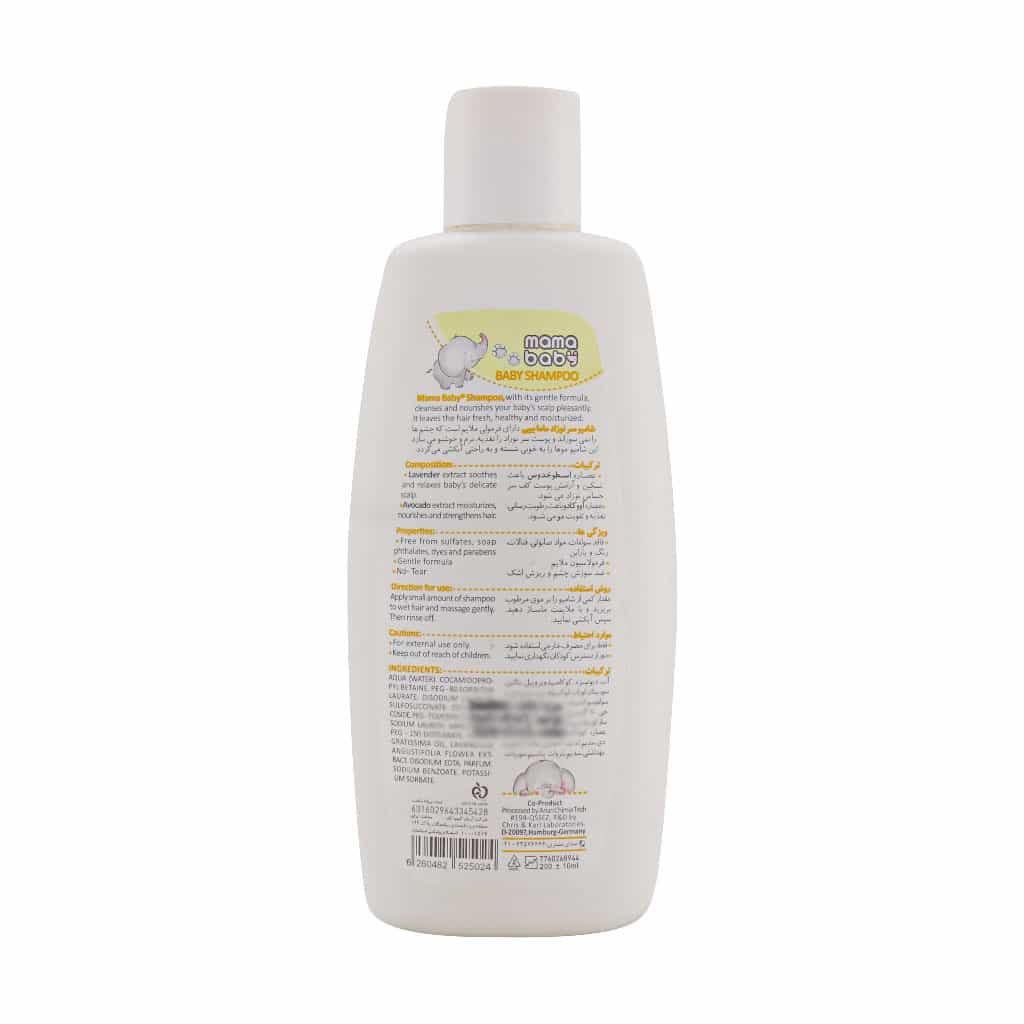 شامپو سر نوزاد 200 میل ماما بیبی برای موی سر نوزادان و کودکان فرموله شده و جهت استفاده روزانه گزینه مناسبی به شمار میرود. این محصول شویندهای ملایم برای مو و پوست سر بوده و با قدرت پاککنندگی مطلوب خود به پاکسازی آنها کمک میرساند.شامپو سر نوزاد 200 میل ماما بیبی با دارا بودن گلیسیرین وروغن آووکادو موجب رطوبترسانی پوست و موی سر کودکان شده و در افزایش نرمی و لطافت آنها تاثیر مثبتی دارد. این محصول ضمن تامین و حفظ رطوبت مورد نیاز مو از ایجاد خشکی و زبری در آن جلوگیری مینماید.شامپو سر نوزاد 200 میل ماما بیبی به واسطه فرمولاسیون خود بافت موی کودک را به خوبی تغذیه نموده و به خاطر داشتن ویتامین در ترمیم و بازسازی سلولهای پوست سر هم نقش بسزایی دارد. این محصول موجب تقویت ساختار موهای ضعیف نوزادان شده و از گره خوردن موها پیشگیری میکند. شامپو نوزاد ماما بیبی فرمولاسیونی فاقد مواد قلیایی، صابون، پارابن، SLS و SLES داشته و مانع بروز حساسیت، تحریکات پوستی در کف سر و اشکریزش و سوزش چشم برای کودک خواهد شد. موی نوزادان معمولا نازک و حساس است که برای شستن آنها لازم است از شامپو مخصوص کودکان استفاده کنید. شامپو سر نوزاد ماما بیبی با فرمولاسیون ملایم و ویژه بدون ایجاد سوزش و یا خارش چشم، پاکیزگی و نرمی را به موی نوزاد شما هدیه میدهد و آلودگیها را از کودک شما دور میکند. فرمولاسیون ملایم این شامپو، ریشه مو نوزاد شما را تقویت و PH مورد نیاز آن را تامین میکند. این شامپو فاقد مواد قلیایی بوده و به نرم و ابریشمی کردن موها و تسهیل پذیری شانه کردن موها کمک موثری میکند. استفاده از شامپو سر نوزاد 200 میل ماما بیبی از تجمع چربیها و آلودگی روی موی فرزند دلبند شما پیشگیری میکند و برای نوزادان و کودکان با موهای نازک و لطیف مناسب است و حتی افراد بزرگسال با موهای حساس میتوانند از فواید این شامپو بهره مند شوند.ویژگیهای اصلی شامپو سر نوزاد 200 میل ماما بیبی :