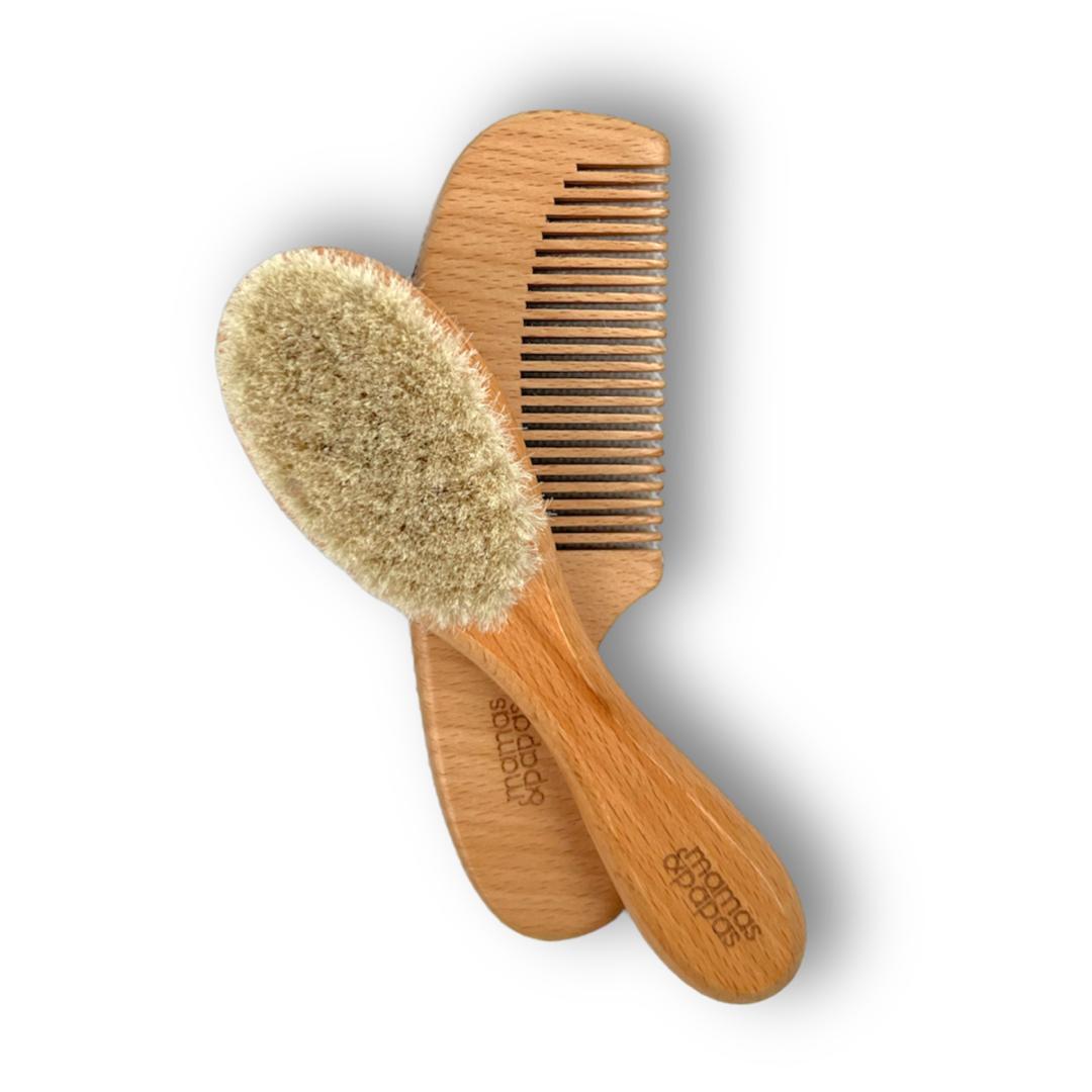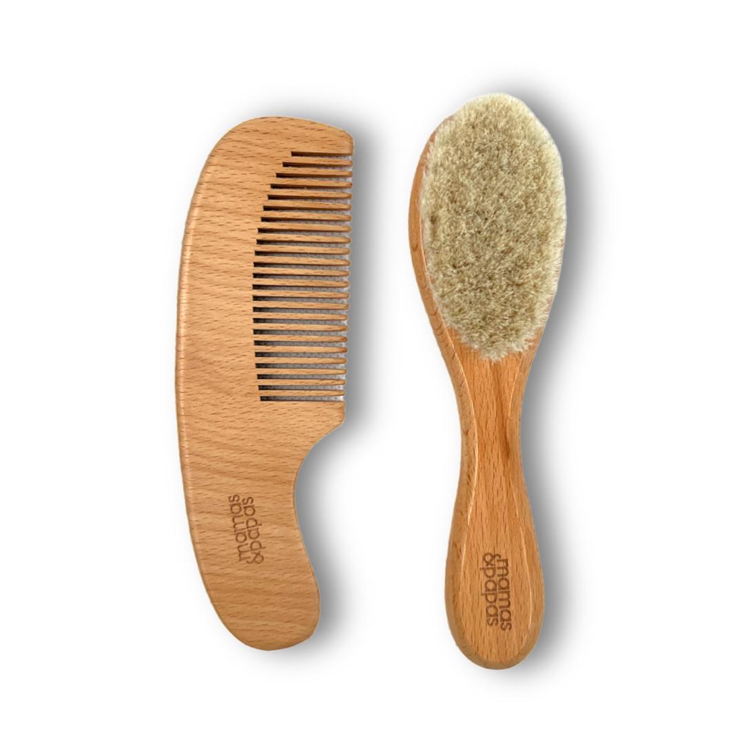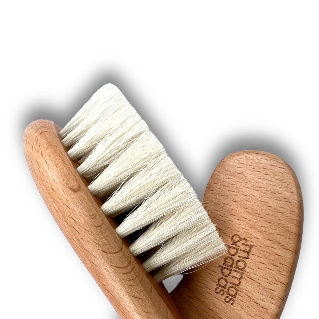 شانه زدن ملایم موهای نوزاد در هر زمان | جلوگیری از گره و موخوره  مرتب کردن موهای ظریف و نازک نوزاد | جلوگیری از آسیب و خشکی مو  مراقبت روزمره در منزل و بیرون | ستی سبک و مقاوم در هر محیطی  مناسب برای مادران حساس و پدران مهربان | مراقبت نرم و ایمن از موهای نوزاد شانه برس چوبی ماماس پاپاس  با جنس بدنه چوبی و الیاف طبیعی نرم و لطیف، برای محافظت از پوست حساس نوزادان طراحی شده است. عاری از هر گونه مواد حساسیت‌زا، این شانه و برس از انگلیس وارد شده و با طرح چوبی زیبای خود، تجربه نرم و امنی را در زمان مراقبت از موهای کودکتان به شما ارائه می‌دهد.