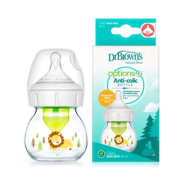 شیشه شیر پیرکس 60 میل دکتر براون طرح شیر دارای قابلیت ضد نفخ