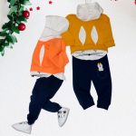 دو تیکه بلوز شلوار کلاهدار خرگوش بی بی وان خردلی - سایز 3
