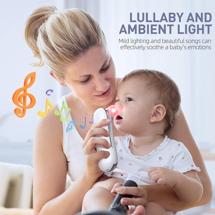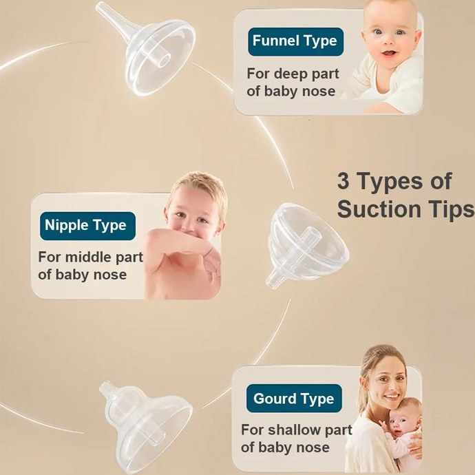 تمیز و بهداشتی: با استفاده از این پوار، می‌توانید بینی نوزاد را به طور کامل و بهداشتی تمیز کنید و از بروز عفونت جلوگیری کنید. آرامش‌بخش: موسیقی ملایم و نورهای رنگی، به آرامش و تسکین نوزاد کمک می‌کنند. ایمن و کاربردی: مواد استفاده شده در ساخت این محصول کاملاً بهداشتی و ایمن هستند و طراحی آن به گونه‌ای است که استفاده از آن بسیار آسان است. قابل تنظیم: با توجه به نیاز نوزاد، می‌توانید سرعت مکش، شدت صدا و نوع سر سیلیکونی را تنظیم کنید.