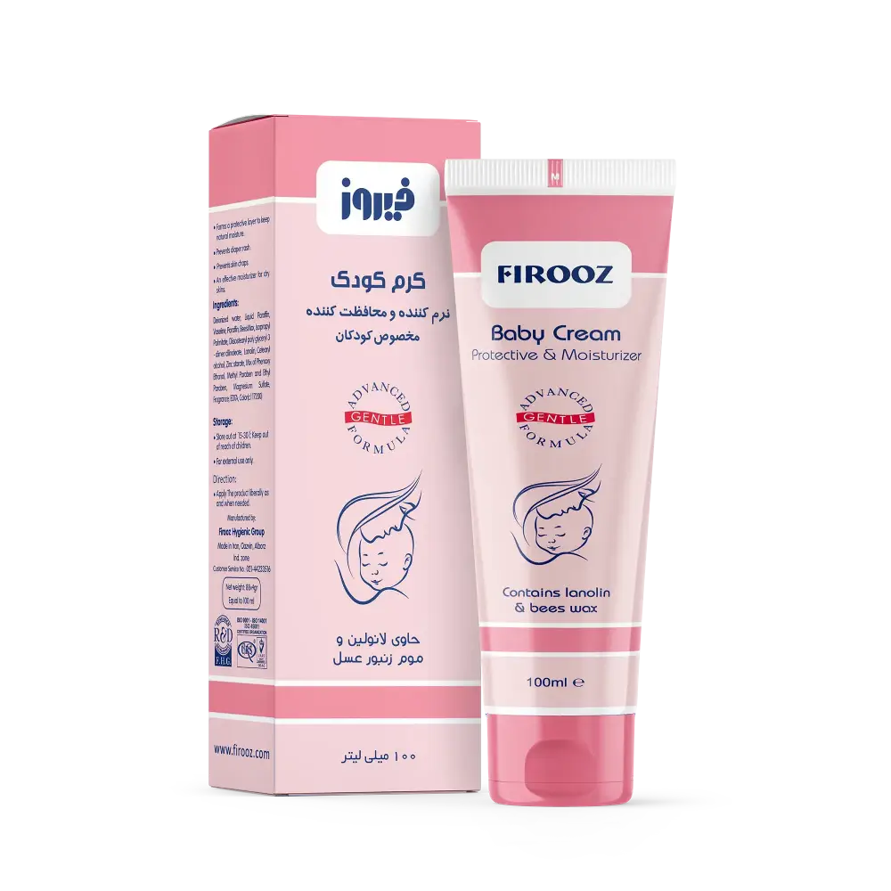 نوزادی که تازه چشم به جهان گشوده است یک موهبت الهی بوده که وظیفه نگه داری اش به شما سپرده شده است. این موجود لطیف نیازمند مراقبت و مهر بی اندازه ی شماست. پوست نوزاد به محض اولین حمام پس از تولدش آخرین سد دفاعی تشکیل شده در شکم مادر را از دست می دهد و کاملا بی دفاع می شود. این پوست بی دفاع نمی تواند رطوبت خود را تامین کند و به سرعت خشک می شود. کرم کودک نرم کننده و محافظت کننده فیروز مواد مورد نیاز پوست او را تامین می کند. گلیسیرین و موم زنبورعسل به کار رفته در این محصول سد غیر قابل نفوذی را روی پوست او تشکیل می دهد که مانع از دست رفتن رطوبت می شود و پوست ظریفش را ترمیم می کند. لذا از کرم کودک فیروز می توان برای جلوگیری از التهابات ناشی از نشست ادرار روی پوست نوزاد استفاده کرد. روغن لانولین فرموله شده در کرم کودک فیروز نیز پوست آسیب پذیرش را ترمیم می کند. ترکیبات کرم کودک فیروز با پوست ظریف کودکان سازگار است و با تشکیل دژی محکم برای پوست بی دفاعش از آن محافظت می کند. کرم کودک فیروز دارای رایحه کودکانه است و شما می توانید با استفاده از آن غرق در رویاهای کودکی خود شوید و خاطرات زیبای آن را به یاد بیاورید.