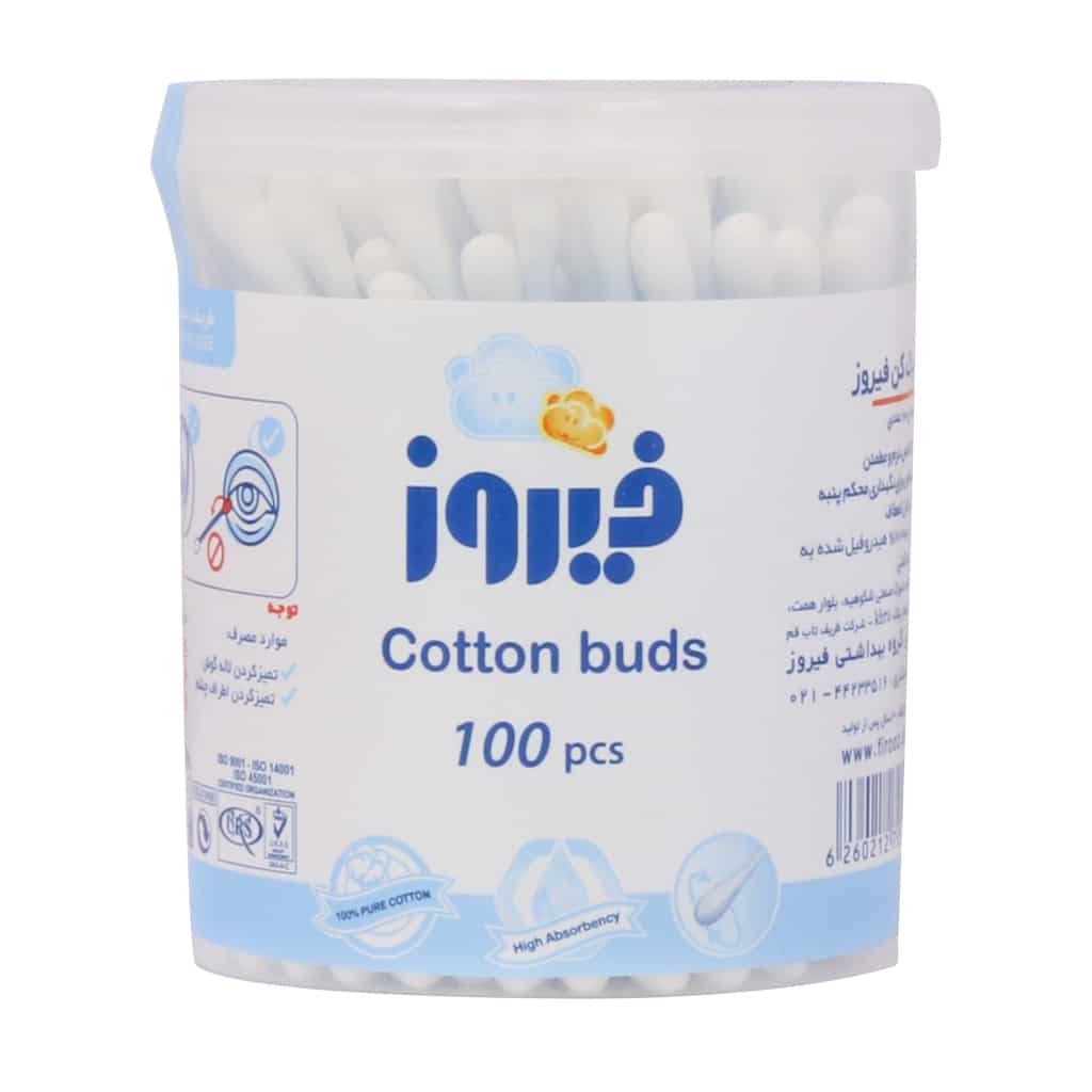 گوش پاک کن فیروز وسیله‌ای مناسب برای تمیز نمودن لایه گوش و پاک کردن آرایش و آلودگی از پوست است. این محصول از پنبه صد درصد خالص، نرم و مطمئن تولید شده و با یک چسب مخصوص به دسته وصل شده است. این چسب از جدا شدن یا تکان خوردن پنبه در زمان استفاده جلوگیری می‌نماید. از گوش پاک کن می‌توان برای پاک کردن قسمت قابل دید حفره گوش، پاک کردن آرایش به ویژه در نواحی دور چشم و حتی پاک نمودن آلودگی در بعضی نقاط صورت استفاده نمود. حتی در مواردی از این محصول در زمان سرماخوردگی کودک و جهت باز کردن و تمیز کردن بینی او استفاده می‌کنند. شما می‌توانید برای مالیدن پماد و داروهای ضد عفونی کننده بر روی زخم نیز از گوش پاک کن استفاده نمایید. البته توجه داشته باشید که در زمان استفاده آن را به داخل گوش فشار ندهید چرا که این کار باعث آسیب به شما خواهد شد. گوش پاک کن یکی از محصولات بهداشتی است که برای موارد زیادی مورد استفاده قرار می‌گیرد. بسیاری از افراد علاوه بر اینکه از گوش پاک کن فیروز برای تمیز کردن لاله گوش استفاده می‌کنند، برای پاک کردن برخی قسمت های آرایش صورت مثل آرایش اطراف چشم، پاک کردن آلودگی ها از روی صورت و مالیدن پماد و دارو های ضد عفونی کننده و بهداشتی روی زخم نیز گوش پاک کن مصرف می‌کنند گوش پاک کن فیروز فاقد آلودگی و میکروب بوده و حساسیت ایجاد نمی‌کند. سر پنبه ای این گوش پاک کن به خوبی به میله پلاستیکی چسبیده و به راحتی جدا نمی‌شود. گوش پاک کن فیروز از پنبه 100% خالص و هیدروفیل ساخته شده است و دارای دسته قابل انعطاف برای سهولت استفاده می‌باشد.