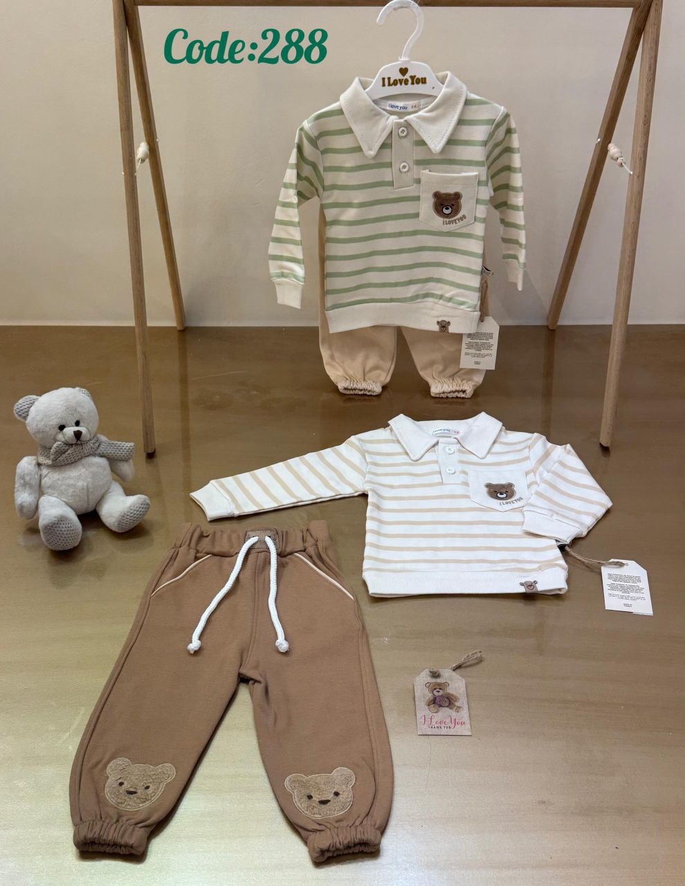 • سایز بندی 2 تکه خرس راه راه الچی کد 288 بر اساس ماه :